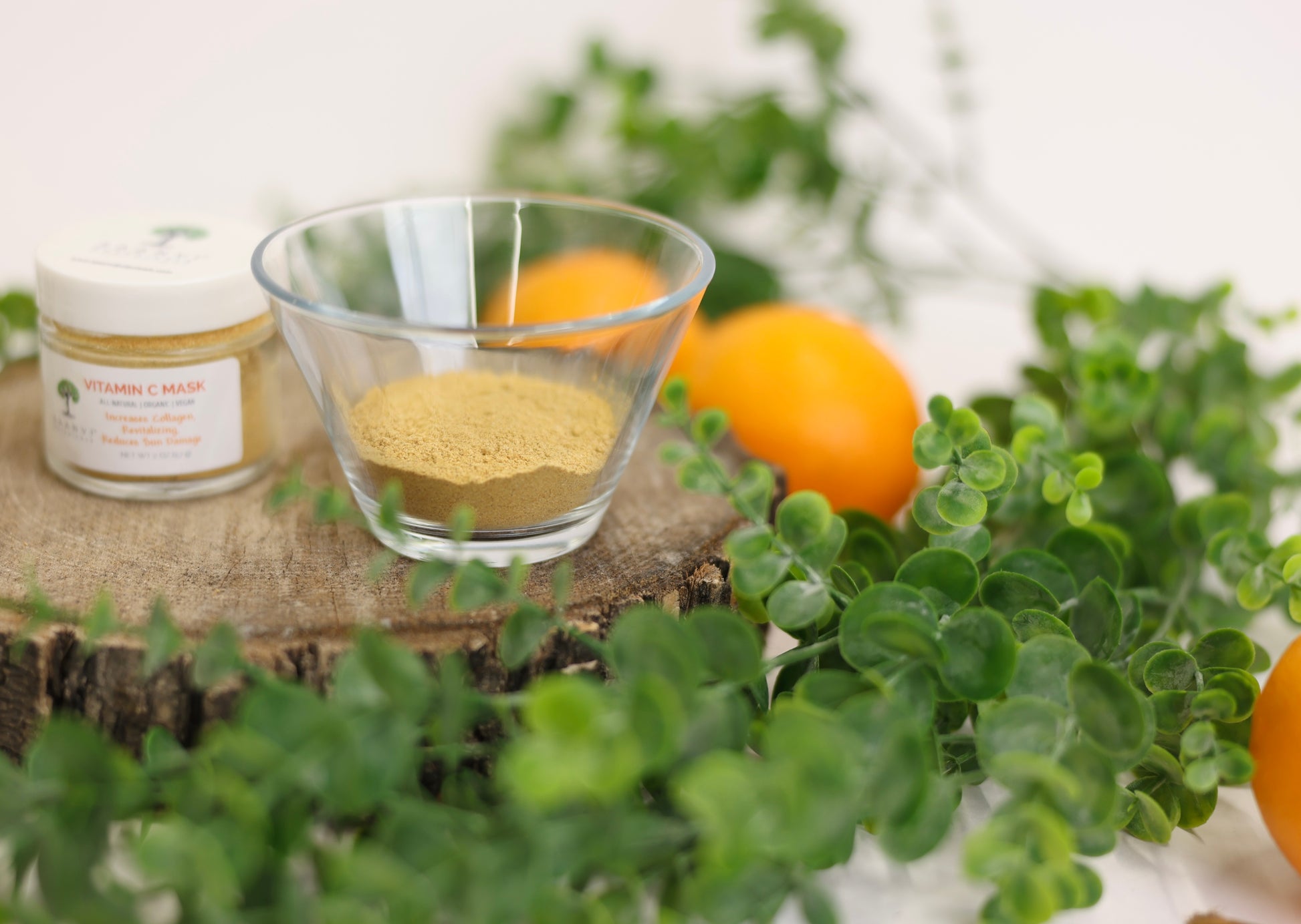 *Kaolin Clay, *Moroccan Pink Clay, *Orange Peel Powder, *Rosehips Powder, *Wild Turmeric Powder, *Trehalose, *Aloe Vera Powder, *Turmeric Oil, *Sweet Orange Oil, *Tocopherol.